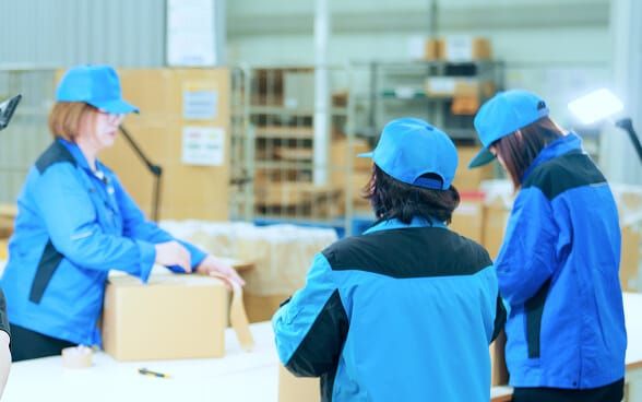 委託商品については、出荷・商品化の最終過程まで責任をもって代行いたします。また、保管だけでなくラベリング、検品等の流通加工業務も承ります。お客様のご要望に合わせ、小口から大量ロットの物流もサポートいたします。